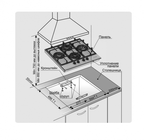 Размеры монтажного проема, ШхГ, см 55,4 х 48,6